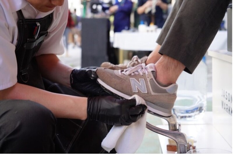 シューズのクイッククリーニングを実施。ケア方法を学びながら体験できるワークショップ形式。シューレース交換や、まだ履ける靴を寄付できる「シューズドネーションボックス」も設置。