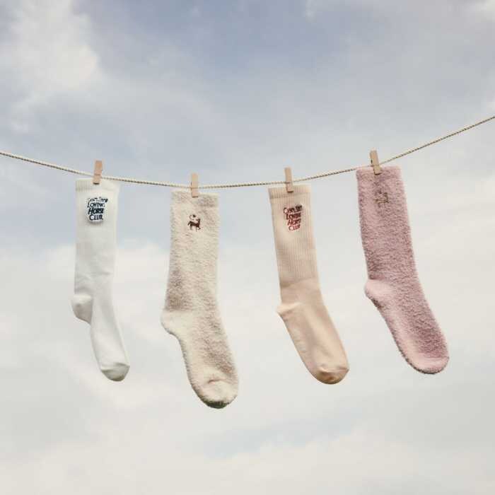 スウェットコンビニット(8,000円税込)やアソートニット帽(4,000円税込)、2Pソックス(1,980円税込)、ポーチチャーム(2,990円税込)も展開。