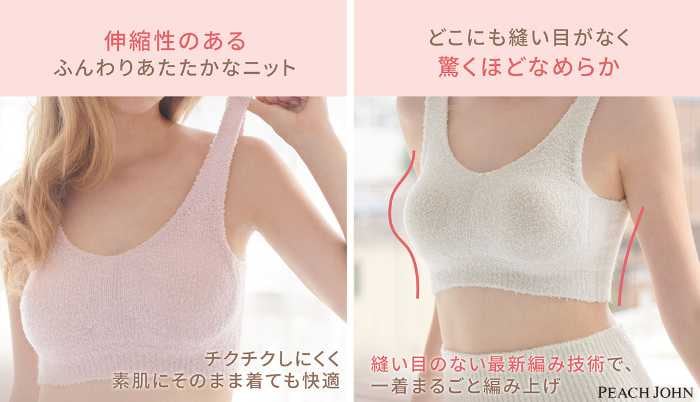 肌寒い季節にぴったりの新作が、PEACH JOHN(ピーチ・ジョン)から登場しました。「ぽかぽかニットノンワイヤーブラ」は、縫い目のないホールガーメント(R)製法を採用したノンワイヤーブラ。なめらかな肌あたりとやさしいフィット感で、まるで着ていないかのような軽やかさ。リラックスタイムはもちろん、ルームウェアやパジャマにもマッチする“あたたかさと心地よさ”を両立した万能アイテムです♡