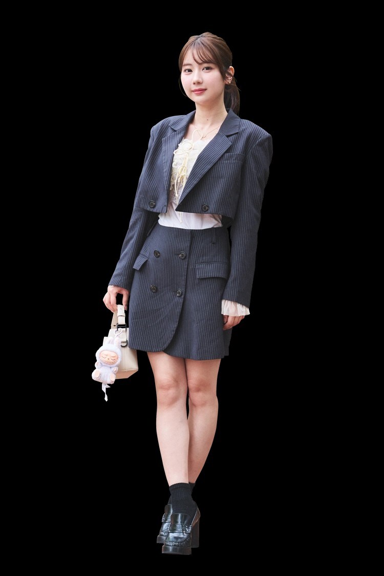 「ジャケットはBLONDEYというブランドで約8,000円。ショート丈なので、脚長にスタイルが盛れる!