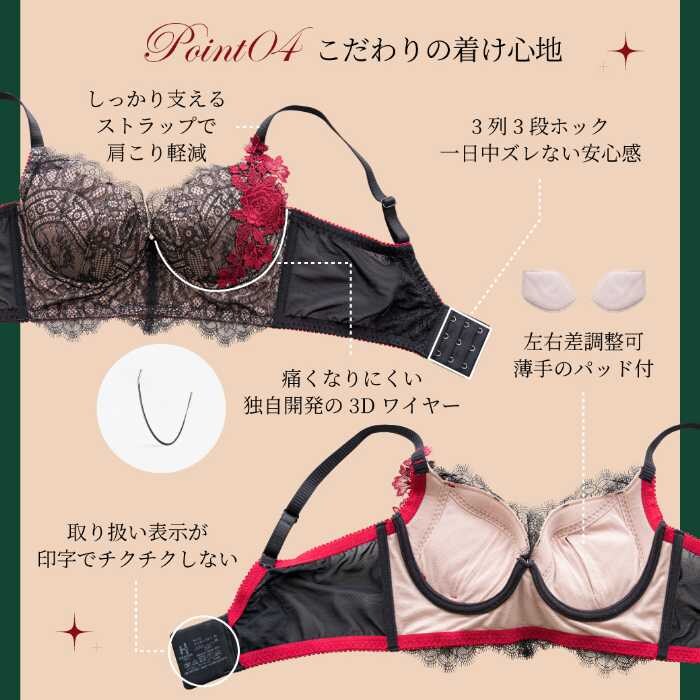 しっかりとした包み込み設計で、朝まで美しい胸の形をキープします。22サイズ展開(B65~M90対応)で、どんな体型にもフィット。