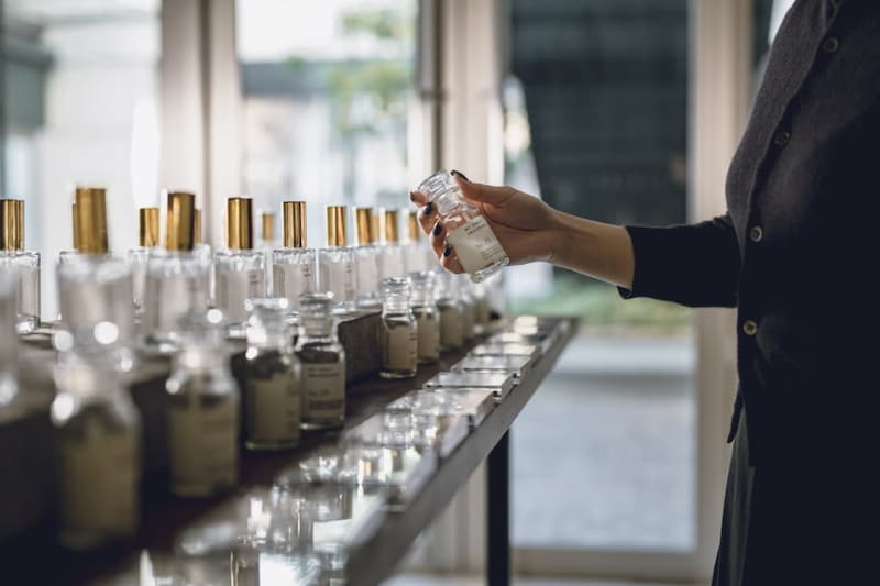 新店舗となる大阪梅田店でも、数十種類の香料から好みを選び、1億通り以上の組み合わせから世界に一つだけの香りを作ることができます。また、完成した香りには名前を付け、オリジナルラベルが添えられます。