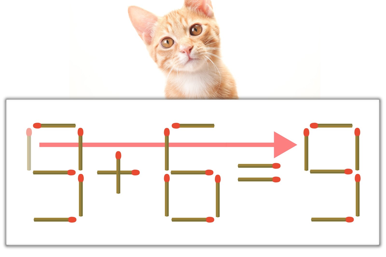 【問題】マッチ棒を1本動かして式を正しくしてください。