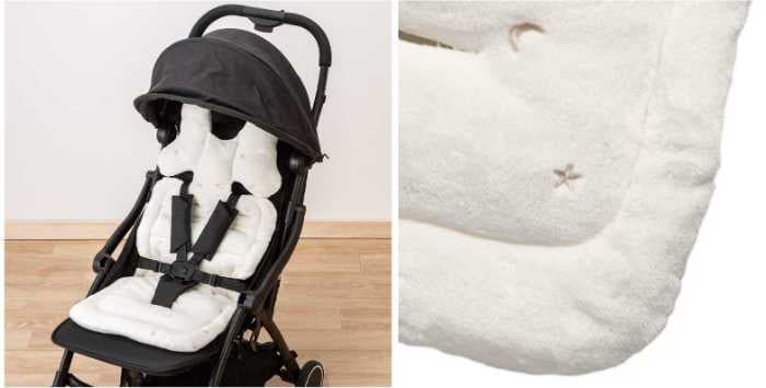 お出かけをより快適にしてくれる「ベビーカーシート」は、899円から展開。赤ちゃんの体をやさしく支えるクッションタイプ(3,490円)は、チャイルドシートにも使用OKです。