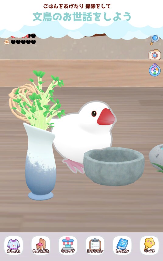 文鳥のかわいさと癒やしを届けるために心を込めて作った文鳥育成ゲームです。