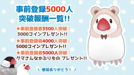 事前登録者数(公式SNSフォロー)が 5,000人を突破 した記念として、