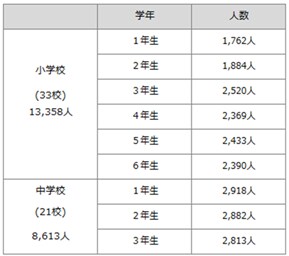 対象: 教育ネット支援自治体の小学校、中学校 児童生徒 21,971人