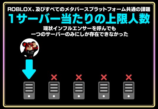これによって、ロブロックスにおける最大のボトルネックとなるサーバーの人数制限という障壁を取り除く事ができるようになり、より大規模なイベントを実施する事ができるようになりました。