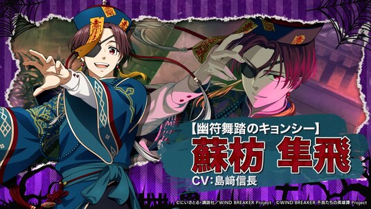 [幽符舞踏のキョンシー]蘇枋 隼飛は、複数の状態異常を相手に付与することができ、状態異常になった相手に対してさらに有利に戦うことができるアタッカーです。[雷跳バンディット]柘浦 大河は、相手に状態異常を与えつつ、自己回復や自己強化により耐久力が非常に高いタンクです。また、この衣装でしか見ることのできない特別な交流もございますので、この機会をお見逃しなく。