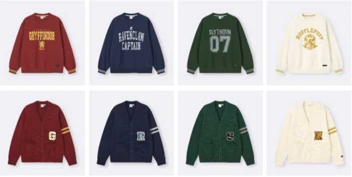 メンズは、グリフィンドール、スリザリン、レイブンクロー、ハッフルパフの4寮をイメージしたヘビーウェイトスウェットやニットカーディガンを展開。
