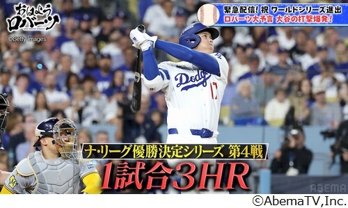 番組は今回、ナ・リーグ優勝決定シリーズ第3戦の試合直前(10月17日)のロバーツ監督を直撃。ポストシーズン開幕後、17打席連続無安打と苦しんでいた大谷選手について、ロバーツ監督は「メンタル面では動揺していると思う」と分析し、続けて「翔平は室内のケージで打つのが好きなんですが、打撃に苦しんでいるので屋外で練習することにした」「翔平のスイングは改善されると思う」と語り、「翔平は問題を解決し調子は上がると私は絶対的に信頼しています」「近いうちに爆発すると思う」と信頼を寄せた。