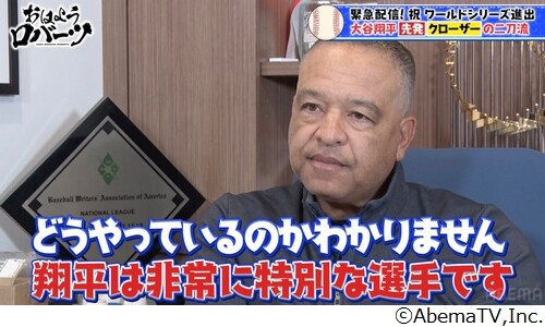 ドジャースのデーブ・ロバーツ監督(53歳)が、10月21日に放送されたスポーツ番組「おはようロバーツ 10月特別版」(ABEMA)に出演。“投手・大谷翔平”について語った。