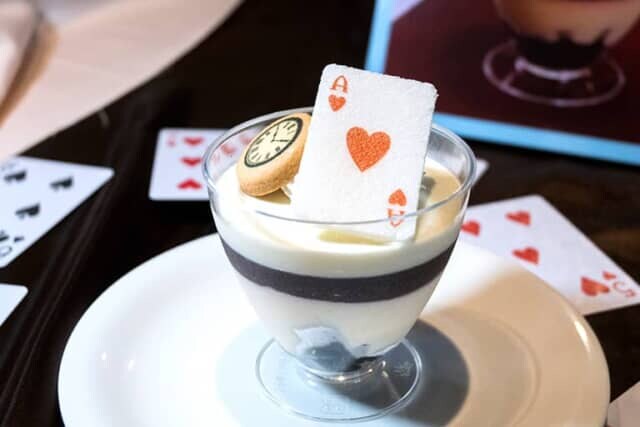 ▲『ふしぎの国のアリス』「Temps Merveilleux カシスとグレープフルーツのブラック&ホワイトパルフェ」¥1,296(税込)