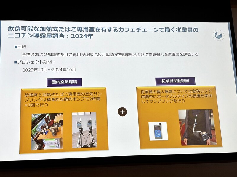 法改正当時には得られていなかった、加熱式たばこ専用室を有するカフェで働く従業員のニコチン受動曝露に関する最新調査結果を発表した。