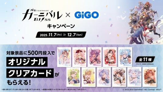 株式会社GENDA GiGO Entertainment(本社:東京都港区 代表取締役社長:二宮 一浩、以下「当社」)は、GiGOグループのお店におきましてDarkWindが提供するBLキャラクタースマホゲーム『NU: カーニバル - Bliss』とコラボした「NU: カーニバル - Bliss × GiGOキャンペーン2025」を2025年11月7日(金)より開催いたします。