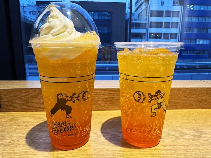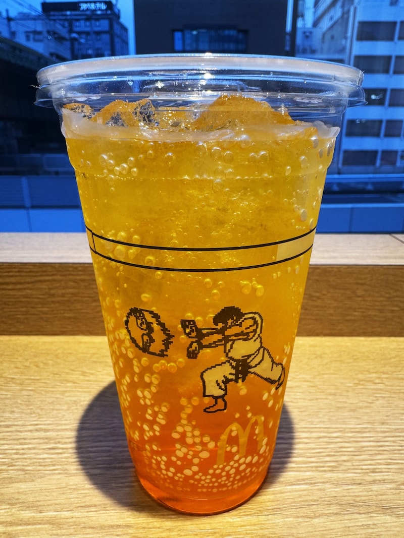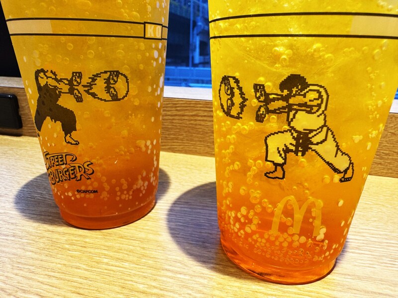 そんなマックとストリートファイターのコラボだが、バーガーだけでなくドリンクジャンルでもコラボ。「マックフィズ みなぎるエナジー」「マックフロート みなぎるエナジー」が販売されている。カップにはリュウとケンがデザインされており、飲んでおいしい、見て楽しいドリンクとなっている。