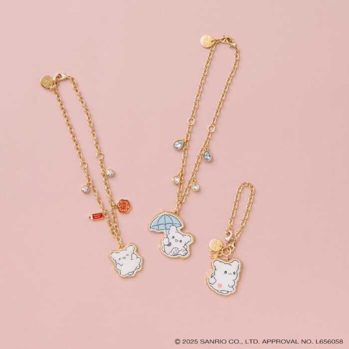 バッグチャームは、はなまるチャーム・雨の日チャーム5,500円、音符チャーム4,400円の3種類。チェーンや金具もこだわり、2way仕様で使いやすいデザインです。