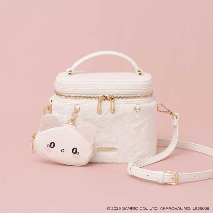 バニティバッグ19,800円はコンパクトながらお財布やスマホがしっかり入るサイズ感。背面にははなまるデザインをプリントし、内装は優しいピンクカラー。