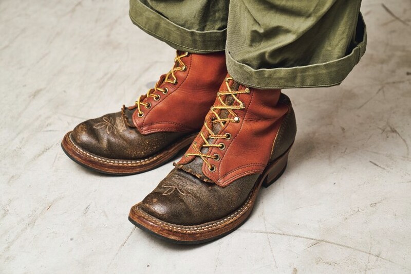 「ホワイツブーツのなかでアーチーズの高さが最も高いラストを使用しているため、下からグッと突き上げられる感触、それによって足にフィットする感じがとても気に入っています。また元々はカウボーイ用に作られたブーツなので、このモデルにのみトゥバグステッチが入れられるのもデザインのアクセントになるので好きですね。ステッチを入れるのはもちろんパーツによって革を変えたりカスタムオーダーを楽しんでいます」