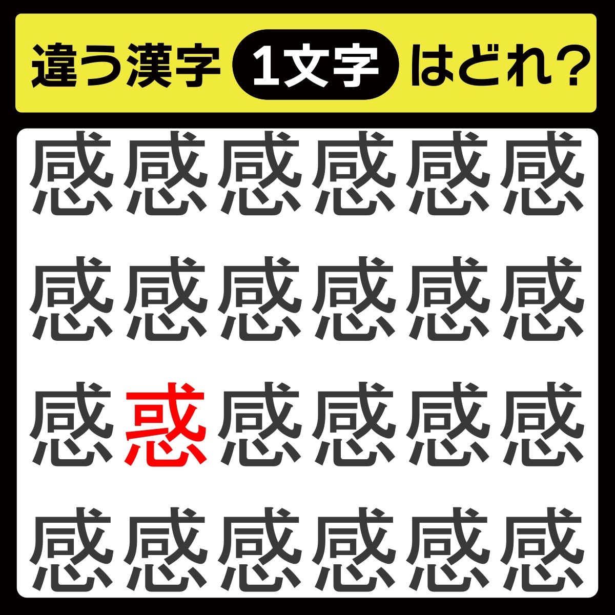 違う漢字は、上から3行目、左から2番目の文字でした!