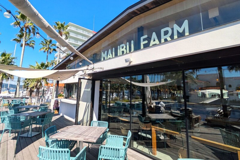 マリブファームのテラス席から、ヤシの木とグッズを眺めていると……