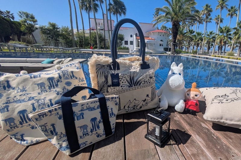 中でもラージサイズの「ムーミン リビエラ バカンスリゾートトート」は、マリブホテル宿泊者限定のプレミア品。他のアイテムは、マリブファームに隣接するショップで購入できます。