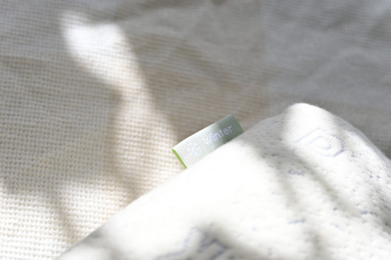 夏用の面を裏返すと、もう片面は冬用のカバーになっており、オーガニックコットン素材で作られている。柔らかい手触りで、チクチクもせず、髪が長い人でも静電気も起きにくい仕様と言える。