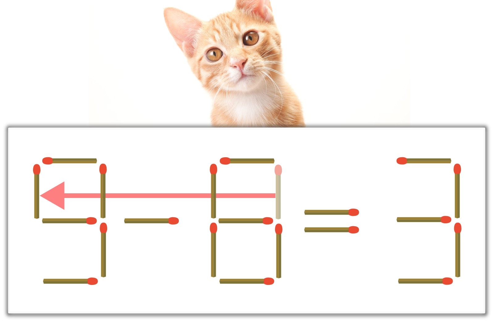 【問題】マッチ棒を1本動かして式を正しくしてください。