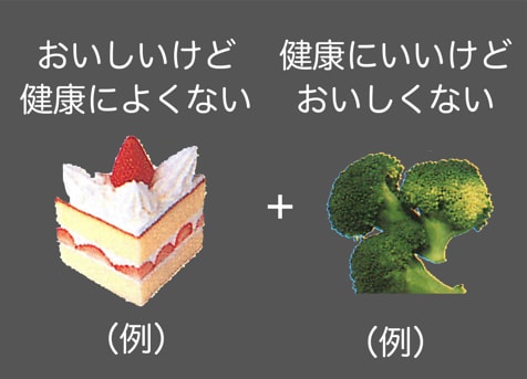 このように私たちの多くは「ウマいけど体に悪い食べ物」を優先して、「マズいけど体にいい食べ物」を避ける傾向があります。