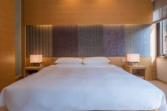 客室は13タイプ187室。ツインやキング、デラックスバルコニールームをはじめ、5タイプのスイートルームをそろえます。室内に開放感が加わるローベッドを採用し、行灯風の照明やヘッドボードを飾る着物のタペストリーなど、古都を感じるデザインです。就寝の準備を整えるターンダウンサービスも希望によって対応可能です。