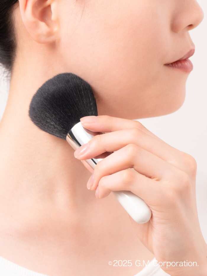 「シンクロブラッシュ」は、メイクブラシとしてはもちろん、フェイスラインや首から鎖骨にかけて撫でるように使用することで、リフトケア効果が期待できます。