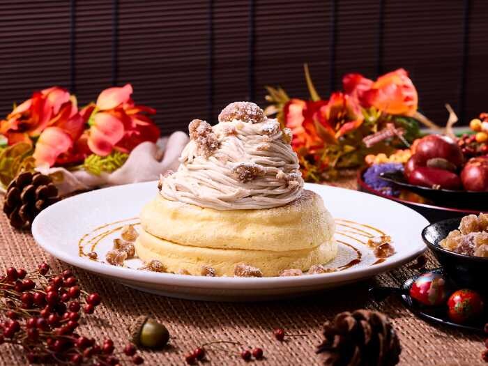 「栗のクリームリコッタパンケーキ(税込1,800円)」は和栗クリームを増量し贅沢に。