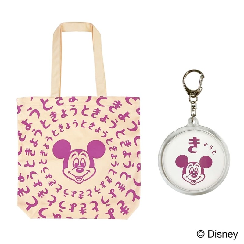 左から、「京都トートバッグ」(3,520円)、「京都キーホルダー」(880円)※1人各1点までディズニー最大級のショッピングイベント「Disney THE MARKET」が2025年も「ジェイアール京都伊勢丹」に帰ってきました! 京都会場だけで買えるトートバッグやキーホルダーは、京都土産としてもうってつけのアイテムです。