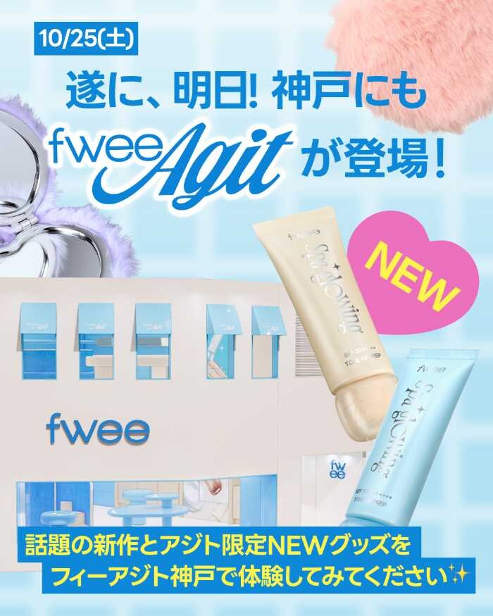 韓国発の人気コスメブランド「fwee(フィー)」が、待望の神戸フラッグシップストア「フィーアジト神戸」を2025年10月25日(土)にオープンします。全国から注目を集める新作下地「スパグロウUVトーンアップベース」が、オフライン初登場♡さらに、ホリデー気分を盛り上げるファーミラーや限定ノベルティも勢ぞろい。トレンド肌を叶える最新コスメをチェックして!