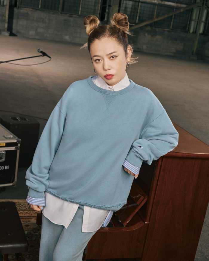 HIMIさんが着用するのは、シンプルながら存在感のあるフーディやクルーネック。
