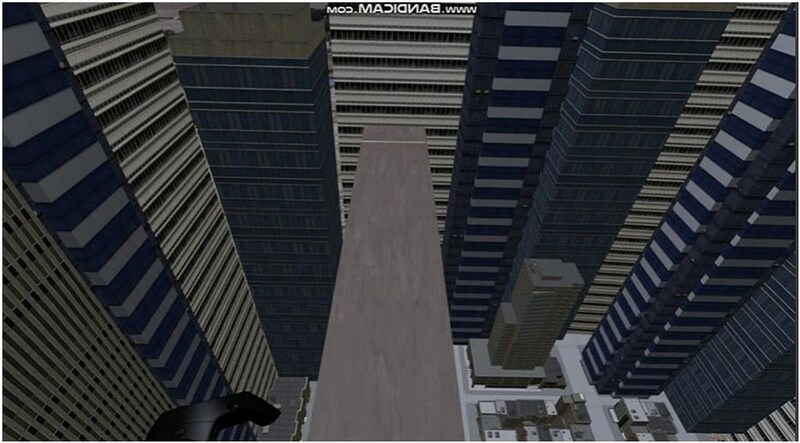 この状態で男性たちは高層ビルの屋上(VR)に移動し、空中に差し出された長さ3メートルの木の板の上を端まで歩くように女性の音声で指示されました。