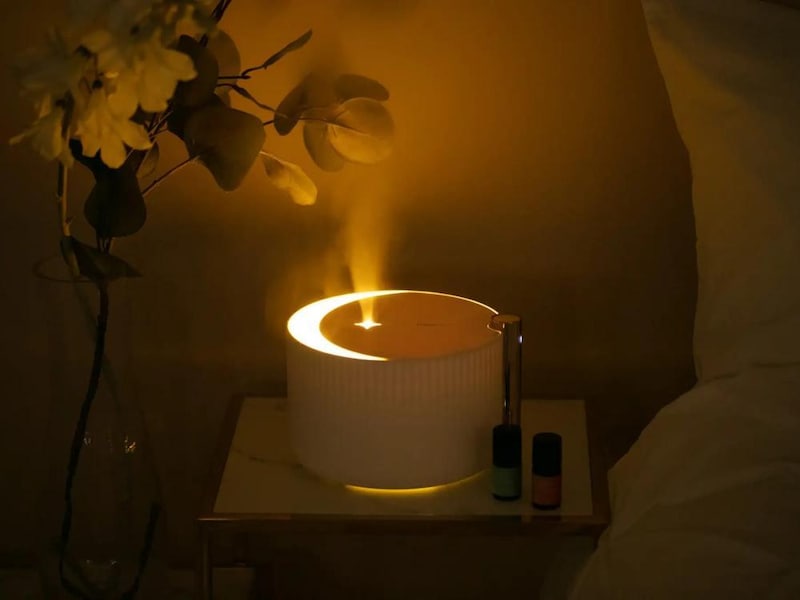 月と星の形にやさしく光る、くつろぎのシーンにぴったりの超音波式加湿器です。幻想的なライトで、まるで夜空を眺めているような気分になります。