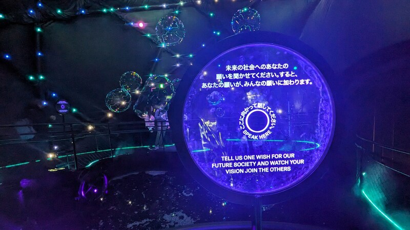 ここではパネルに向かって、“未来の社会への願い”を声に出すと、その想いが泡となってフワリと舞い上がります。