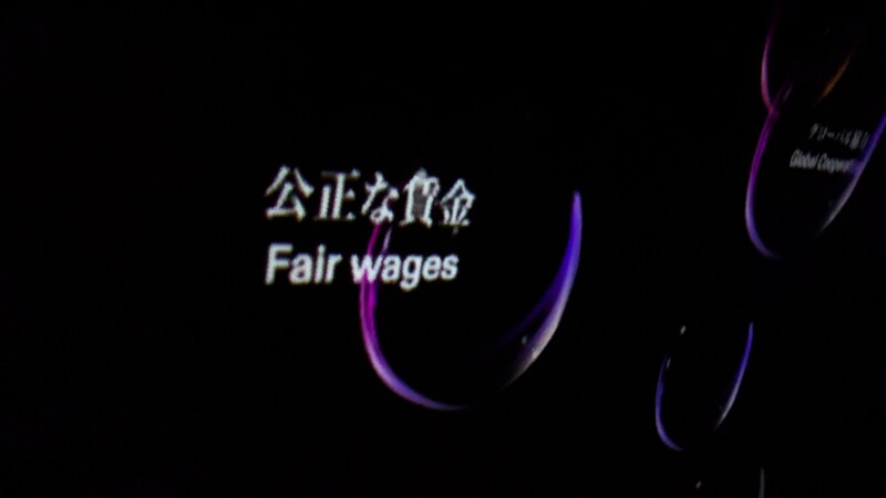 次のエリアへ続く通路には、前日に多くの人が願った内容が映し出されていました。