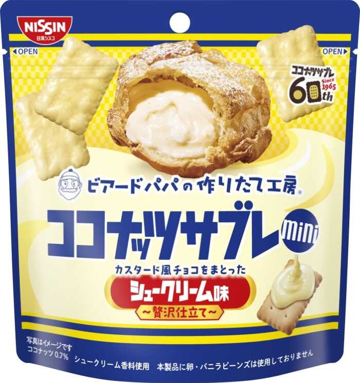 1965年の誕生から60年、世代を超えて愛され続けるロングセラー「ココナッツサブレ」。そんな名作に、人気シュークリーム専門店「ビアードパパ」との夢のコラボが再び♡ 甘く香るカスタード風味がたまらない「ココナッツサブレ シュークリーム味」と、贅沢なチョコレートコーチングで仕上げた「ココナッツサブレミニ シュークリーム味 ~贅沢仕立て~」が登場します。