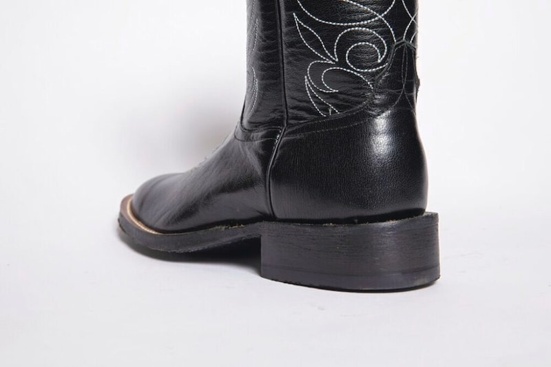 高さのあるヒールもウエスタンブーツの特徴。実際のカウボーイが履くブーツにおいては、乗馬時に足が鞍から滑り落ちないように、少し傾斜している。