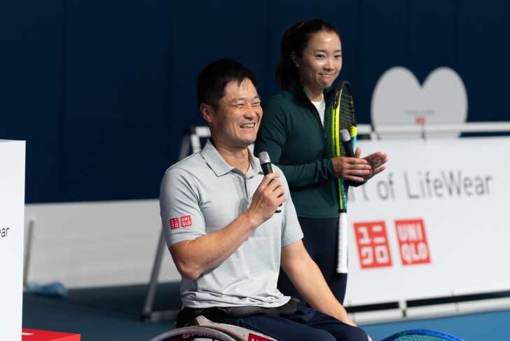 イベント第1部「The Heart of LifeWear “あったかい”を届けよう!」には、ユニクロ グローバルブランドアンバサダーの国枝慎吾氏、東レ パン パシフィック オープンテニストーナメント大会アンバサダーの奈良くるみ氏が登場。