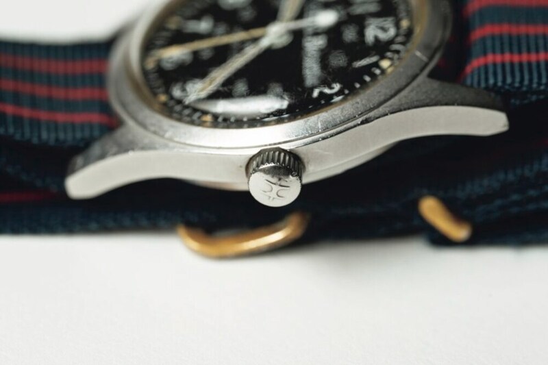 リューズにはハミルトンの頭文字であるHの刻印が入っているのもポイント。名作カーキをベースにしたデザインで、タフなステンレスケースで手巻きムーブメント。