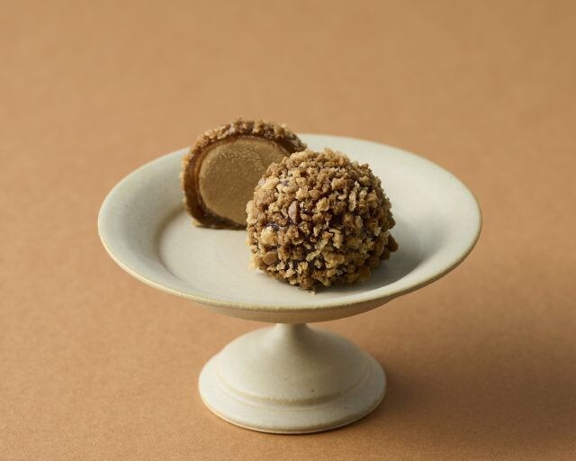 室町時代後期の京都で創業し、5世紀にわたり和菓子屋を営む「とらや」より、新しいあんスイーツが登場。あんとあんを包む求肥にコーヒーを混ぜ込み、黒砂糖味のカルメラをまぶした一品です。