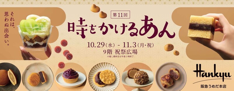 阪急うめだ本店9階祝祭広場では、2025年10月29日(水)~11月3日(月・祝)の期間、人気イベント「第11回 時をかけるあん」を開催。会場には総勢約150ブランド220種類が集結する、あん好きには見逃せないイベントです。