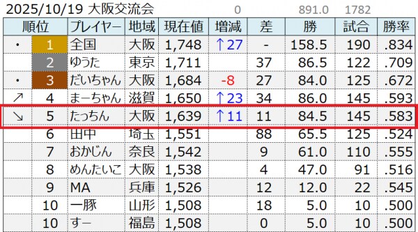 *ランキング5位のプレイヤー(2025年10月19日現在)