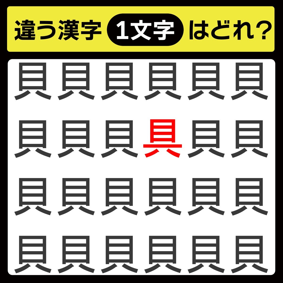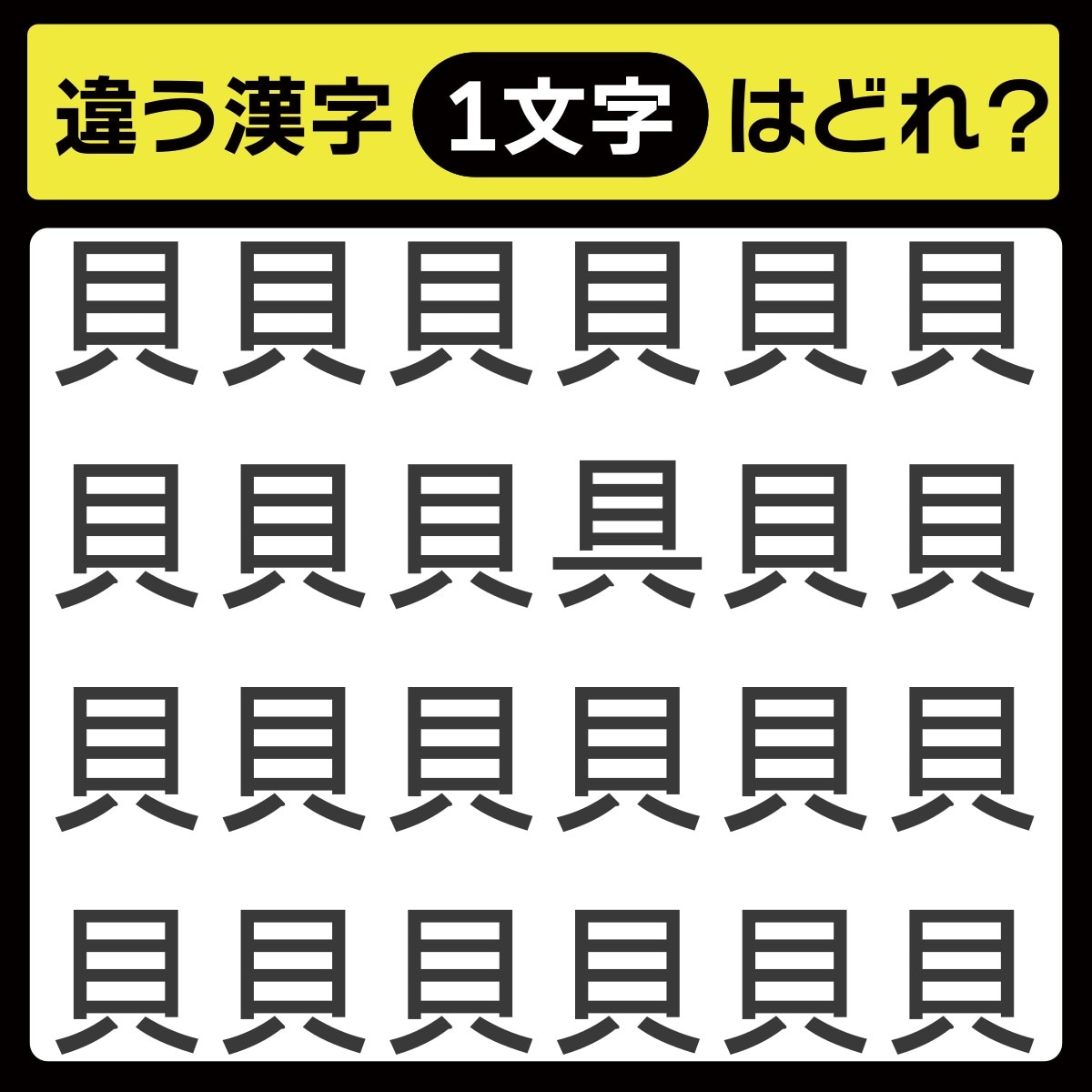 違う漢字は、上から2行目、右から3番目の文字でした!