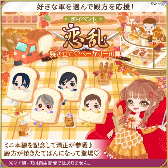 また、同時開催の陣イベントでも清正が参戦いたします。「焼きたてベーカリー」をテーマに様々な特典をご用意しておりますので、特典のアバターを集めて焼きたてパン姿の、いつもと一味違う殿方にご注目ください。