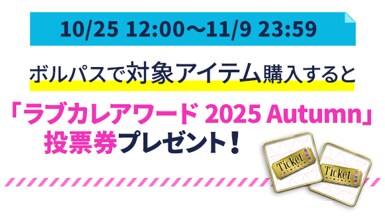 「ボルパス」にて3,000円(税込)以上のアイテムを購入すると、「ラブカレアワード2025 Autumn」の投票券が手に入ります。