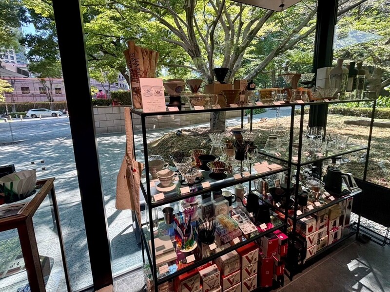 1912年の創業以来、多くのコーヒー器具をつくってきたHARIO直営のカフェで店内ではHARIOの器具で淹れたコーヒーや紅茶が楽しめるだけでなく、コーヒー器具やガラスのアクセサリーも販売されています。